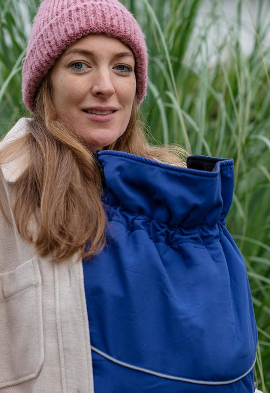 The Deluxe Flex Cover is a weatherproof winter cover with a removable hood. It features elastic straps that can be used either as an apron when carried on the front or crosswise when carried on the back (with 360-degree rotating hooks for a perfect fit). Thanks to the clever Flex system, the cover can be easily rolled down without having to remove the baby from the carrier. The Flex Deluxe is therefore ideal for shopping and frequent transitions from indoors to outdoors.